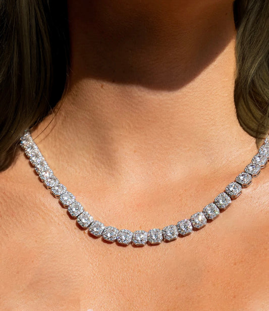 CLUSTERED TENNIS CHAIN [WHITE GOLD 10mm]